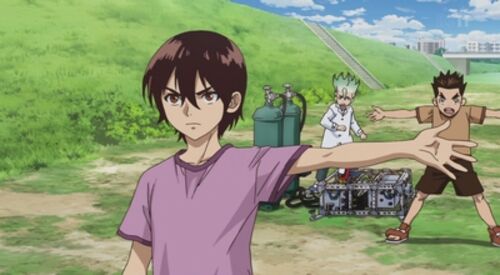 司の もし3700年前に出会っていたら 初めての友達に、なれたかもしれない… と言うシーン 幼い頃の千空達に 幼い司も加わったシーンが 良かったですね。 司は大樹達の目の前で千空を殺します。 大樹と杠は その場にあった黒色火薬に大岩をぶつけ 爆発を起こし…